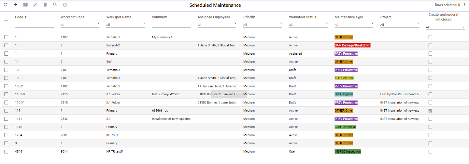 Manually scheduled or ad hoc maintenance input